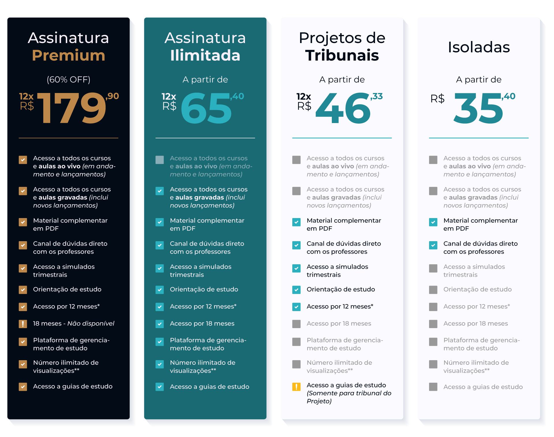 Somos uma plataforma especializada em preparar candidatos para concursos de Tribunais. Nossos cursos visam à preparação do aluno a médio e longo prazo para os cargos de analista e técnico, tendo como referência as principais bancas.