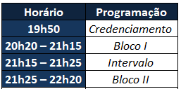 É estritamente proibida a gravação, disponibilização ou distribuição das aulas ministradas neste evento.