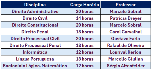 A Jornada FGV proporciona uma preparação completa e estratégica, cobrindo os principais tópicos de todas as disciplinas do edital. Com uma carga horária total de 152 horas, cuidadosamente distribuída entre as matérias, o curso foi planejado para oferecer profundidade, foco e eficiência máxima na sua preparação.