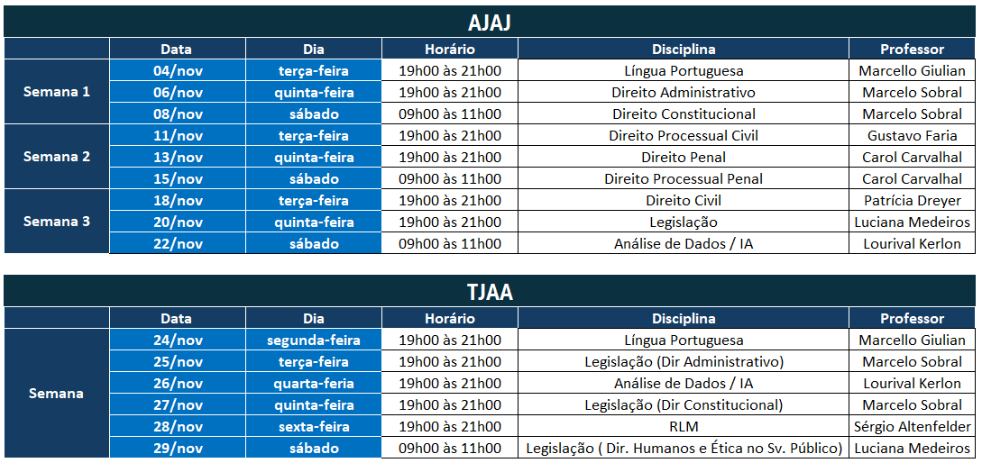 AJAJ (Analista Judiciário – Área Judiciária): de 04 a 22 de novembro