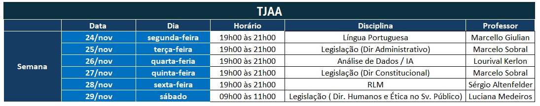 Durante esse período, você participará de uma programação intensa e estratégica, com aulas focadas nos principais pontos do edital do TJ-RS. O cronograma foi cuidadosamente elaborado para revisar, com profundidade e objetividade, os temas centrais que têm maior chance de aparecer na prova.